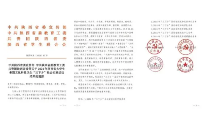 近日,中共陕西省委宣传部、中共陕西省委教育工委、共青团陕西省委、陕西省学生联合会联合印发文件,通报了2024年陕西省大学生暑假文化科技卫生“三下乡”社会实践活动结果,西安培华学院凭借卓越的组织能力荣获多项省级荣誉。