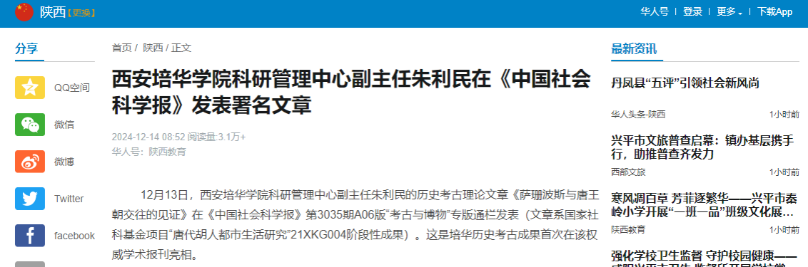 此次署名文章的发表,是培华历史考古领域研究的重大突破,也展示了学校在历史考古领域的学术实力。今后,西安培华学院将继续加大科研力度,为传承和弘扬中华优秀传统文化贡献力量。