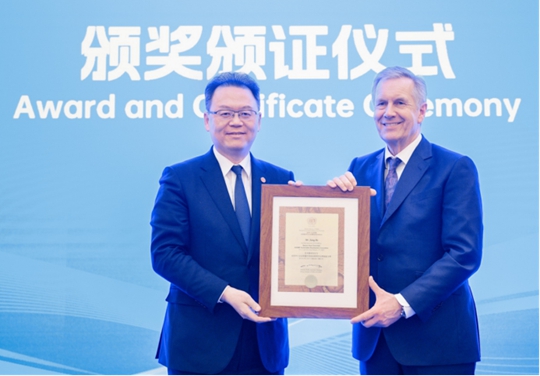 会上,西安培华学院姜波理事长受聘为全球中小企业联盟可持续发展委员会高级副主席,武尔夫先生为其颁发聘书。