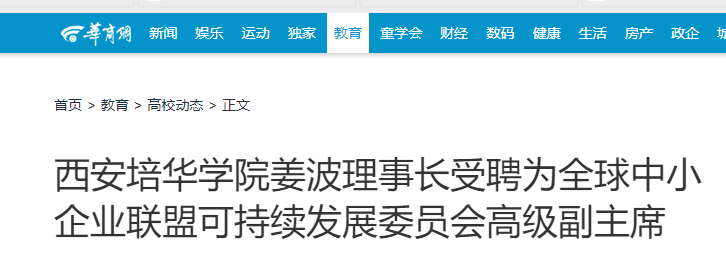 华商网:西安培华学院姜波理事长受聘为全球中小企业联盟可持续发展委员会高级副主席