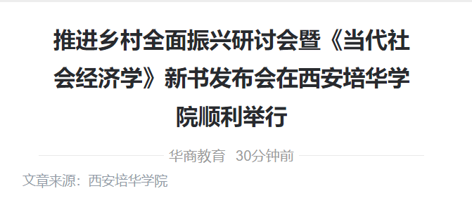 华商头条:推进乡村全面振兴研讨会暨《当代社会经济学》新书发布会在西安培华学院顺利举行