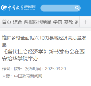 中国教育新闻网:《当代社会经济学》新书发布会在西安培华学院举办