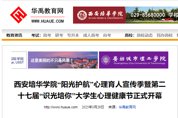 华禹教育网:西安培华学院“阳光护航”心理育人宣传季暨第二十七届“识光培你”大学生心理健康节正式开幕