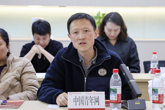 中国青年网地方业务运营中心副主任高琦详细介绍了在陕业务板块,并梳理了近年来与学校开展的合作内容。他表示,下一步将打开思路,以校企共建为突破口,与学校开展更深、更细致的合作,共同推动教育事业的发展。