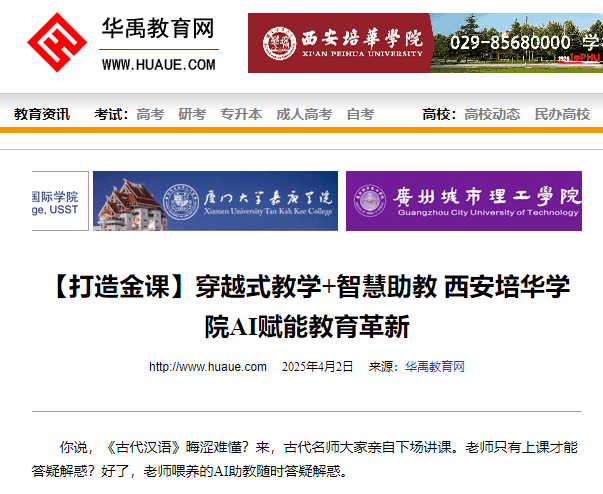 华禹教育网:【打造金课】穿越式教学+智慧助教 西安培华学院AI赋能教育革新