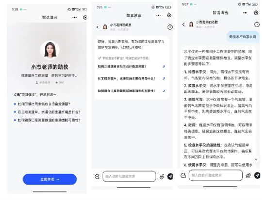 为什么要使用AI助教?刘杰老师讲到:“《工程测量》是一门实践性课程,需要学生大量的实验,老师不能24小时的陪伴,基于现实需要,我们课程组探索AI与工程教育的深度融合,通过构建“AI助教-助学-助管”三位一体的智能教学模式,实现了从传统课堂到智慧教学的跨越式升级,为培养新时代复合型人才注入科技动能。”