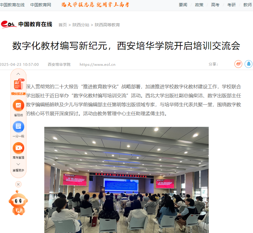 活动获得了一线教师的普遍欢迎,参训教师与出版社编辑团队就数字教材开发中的技术难点、资源整合、交互设计等问题展开深度交流。