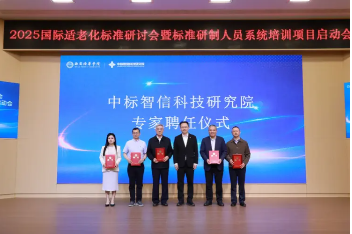 会上,中标智信科技研究院正式成立,与会领导为研究院揭牌,西安培华学院理事长姜波任院长,张纲参事、孙安会会长等被聘为研究院专家库成员。研究院将以加速实现技术研发、产业应用、国际布局的发展目标,为适老化产业的规范化、国际化注入新动能,为“中国制造2025”和高质量发展提供标准化支撑。
