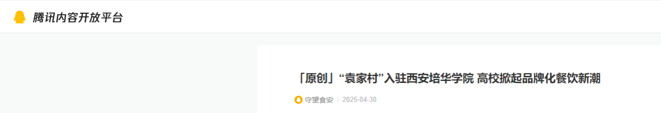 西安培华学院理事长姜波表示,“培华学院长期以来注重校园的食品安全,我们这些年来呢,不断的加强我们的食品安全的管理,提升我们的标准,那特别是我们在进一步的提升学校的美誉度,在引进品牌的餐饮上下大力气,特别是像我身后的这个袁家村,这也是我们陕西省乡村振兴第一品牌设立在陕西高校的唯一的一个品牌店,所以我们以这种品牌建设为抓手,然后将我们的食品的安全,包括它的规范,它的标准,它的流程,我们进一步的统一起来。那么我们也希望通过标准化的这样一些品牌企业的加盟培华,我们也希望的话呢,能够在行业啊,特别是在校园餐饮里边、团餐里边,也能够树立这么一个标杆。”