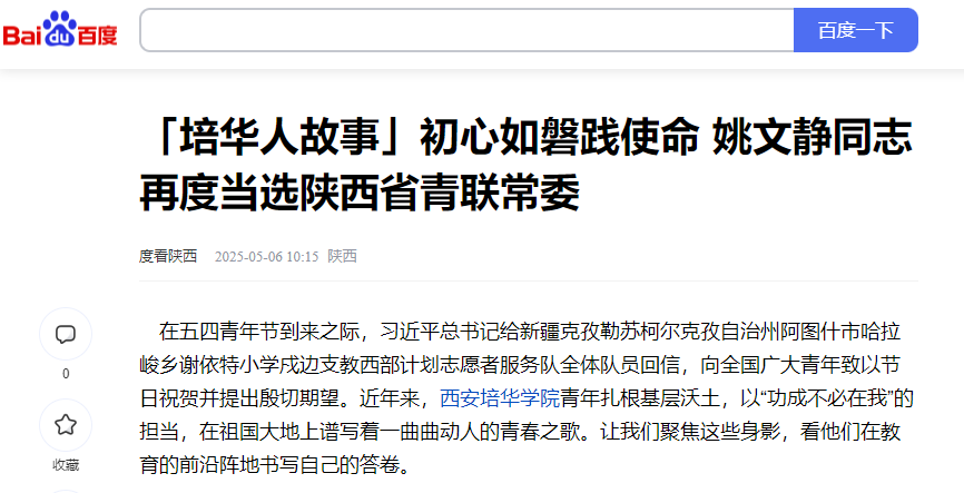 百度:「培华人故事」初心如磐践使命 姚文静同志再度当选陕西省青联常委
