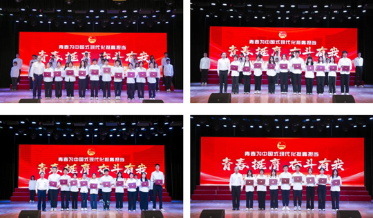 当晚,“青春挺膺 奋斗有我”2025年共青团表彰大会在大学生活动中心举行,理事长姜波致辞,副校长、党委副书记姚文静宣读表彰文件。校团委书记董莹主持。