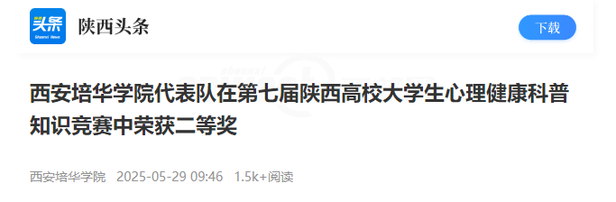 5月23日,由中共陕西省委教育工作委员会、陕西省教育厅主办,西安工程大学承办的第七届陕西高校大学生心理健康科普知识竞赛暨心理素质拓展运动嘉年华在西安工程大学落幕,由西安培华学院医学院王美蔺、智能科学与工程学院林晓玲、人文与国际教育学院韩渝璐三位同学组成的“识光培你”代表队凭借扎实的心理知识功底、出色的临场应变能力及默契的团队协作能力,从全省90余所高校、270名参赛选手中脱颖而出,荣获省级决赛二等奖。