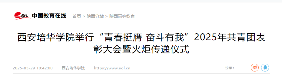 中国教育在线:西安培华学院举行“青春挺膺 奋斗有我”2025年共青团表彰大会暨火炬传递仪式