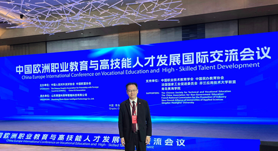 2025年正值中国与欧盟建交50周年,为进一步推动中欧职业教育和人文交流,6月11日,由中国人民对外友好协会和中国欧盟协会共同主办的“中国欧洲职业教育与高技能人才发展国际交流会议”在山东青岛举行。十三届全国政协副主席、中国欧盟协会会长刘奇葆,西班牙前首相萨帕特罗,青岛市人民政府副市长赵燕等领导出席会议并致辞,中国欧盟协会副会长夏耕主持。西安培华学院理事长姜波作为中方嘉宾在分论坛研讨及圆桌对话作分享。