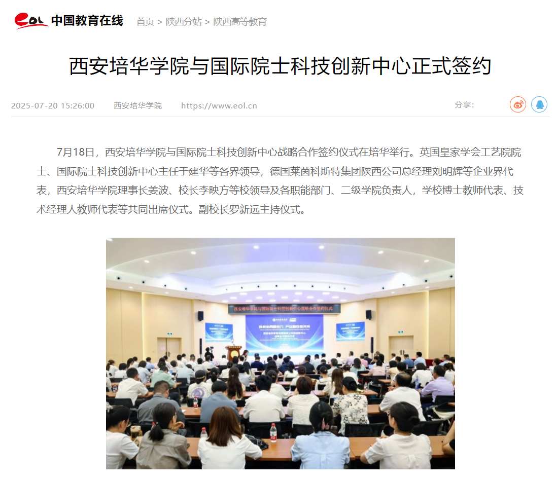 中国教育在线:西安培华学院与国际院士科技创新中心正式签约