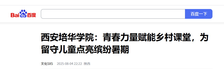 百度:西安培华学院:青春力量赋能乡村课堂,为留守儿童点亮缤纷暑期