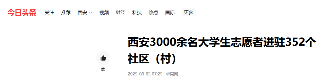 今日头条:西安3000余名大学生志愿者进驻352个社区(村)