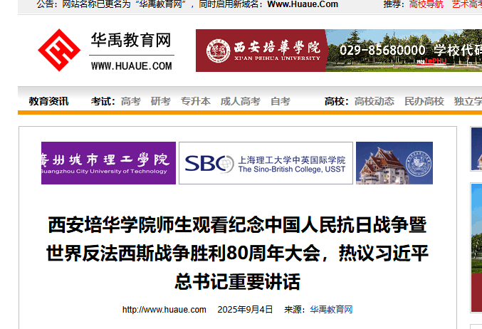 9月3日,纪念中国人民抗日战争暨世界反法西斯战争胜利80周年大会在北京天安门广场隆重举行。西安培华学院组织师生代表通过多种方式收看了大会直播盛况,共同见证了这一具有重大历史意义的时刻。