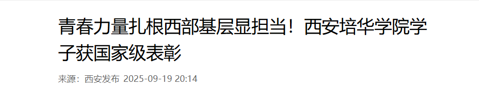 没有惊天动地的壮举,却有润物无声的坚守。这5名培华学子的故事,是无数西部计划志愿者的缩影——他们带着专业所长,怀揣热忱之心,在基层岗位上发光发热,用脚步丈量责任,用时间书写担当。“到西部去,到基层去”于他们而言,不是一句口号,而是一场跨越山海的青春远征,一次扎根大地、向阳生长的生命实践。