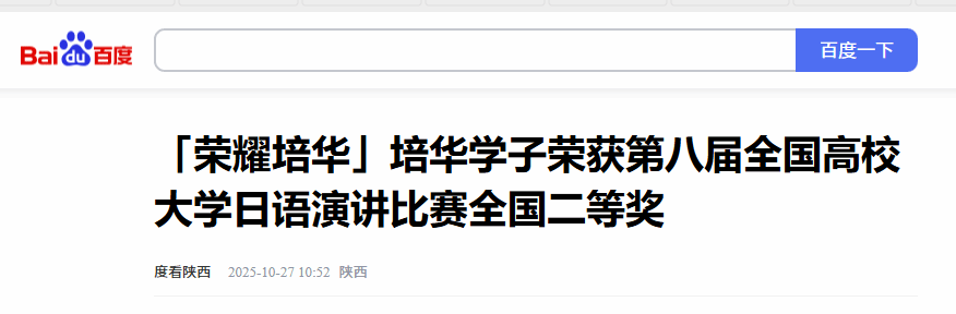 百度:「荣耀培华」培华学子荣获第八届全国高校大学日语演讲比赛全国二等奖