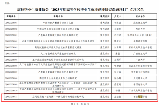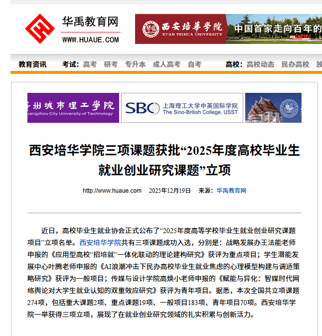 华禹教育网“西安培华学院三项课题获批“2025年度高校毕业生就业创业研究课题”立项”