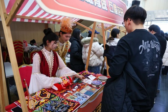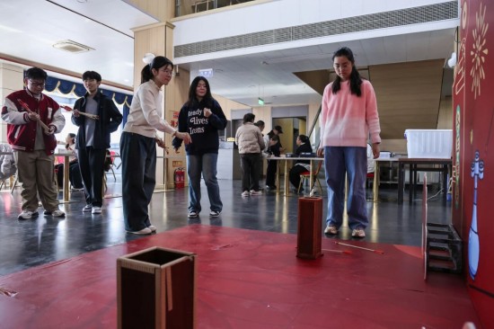 活动创新融合传统与创意,设置多个特色集市区域:书法集市中墨香四溢,同学们挥毫写下寓意吉祥的对联;投壶、套圈等趣味游戏让节日快乐翻倍;糖葫芦制作、咖啡体验区则充满烟火气;劳动教育成果集市里,同学们现场分发亲手种植的青菜;民族体验区更让师生近距离感受少数民族传统文化魅力。
