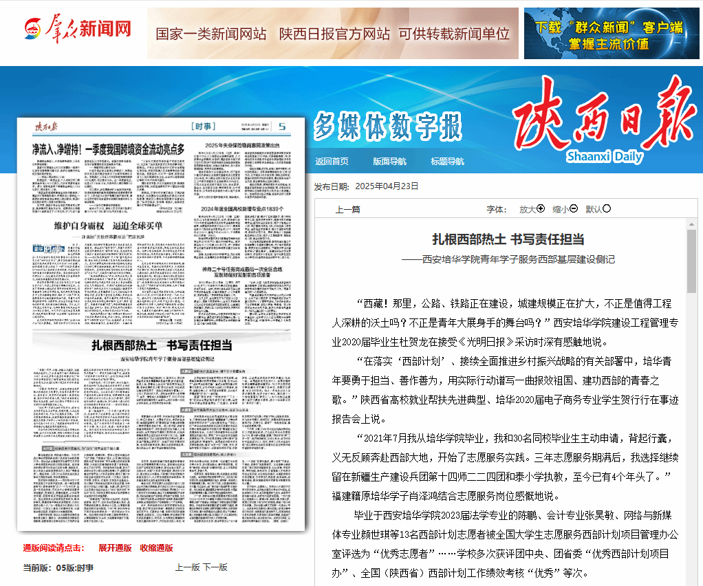 筑梦西部,唱响青春之歌;扎根基层,绘就奋斗底色。西安培华学院的青年学子们,正用他们的实际行动,在祖国最需要的地方,谱写着一曲曲动人的青春奉献之歌。他们向下扎根,从基层汲取养分与力量;向上生长,在广阔天地中追逐梦想、实现价值。他们的故事,激励着更多青年投身基层,为国家发展贡献青春力量,共同书写更加辉煌的明天。
