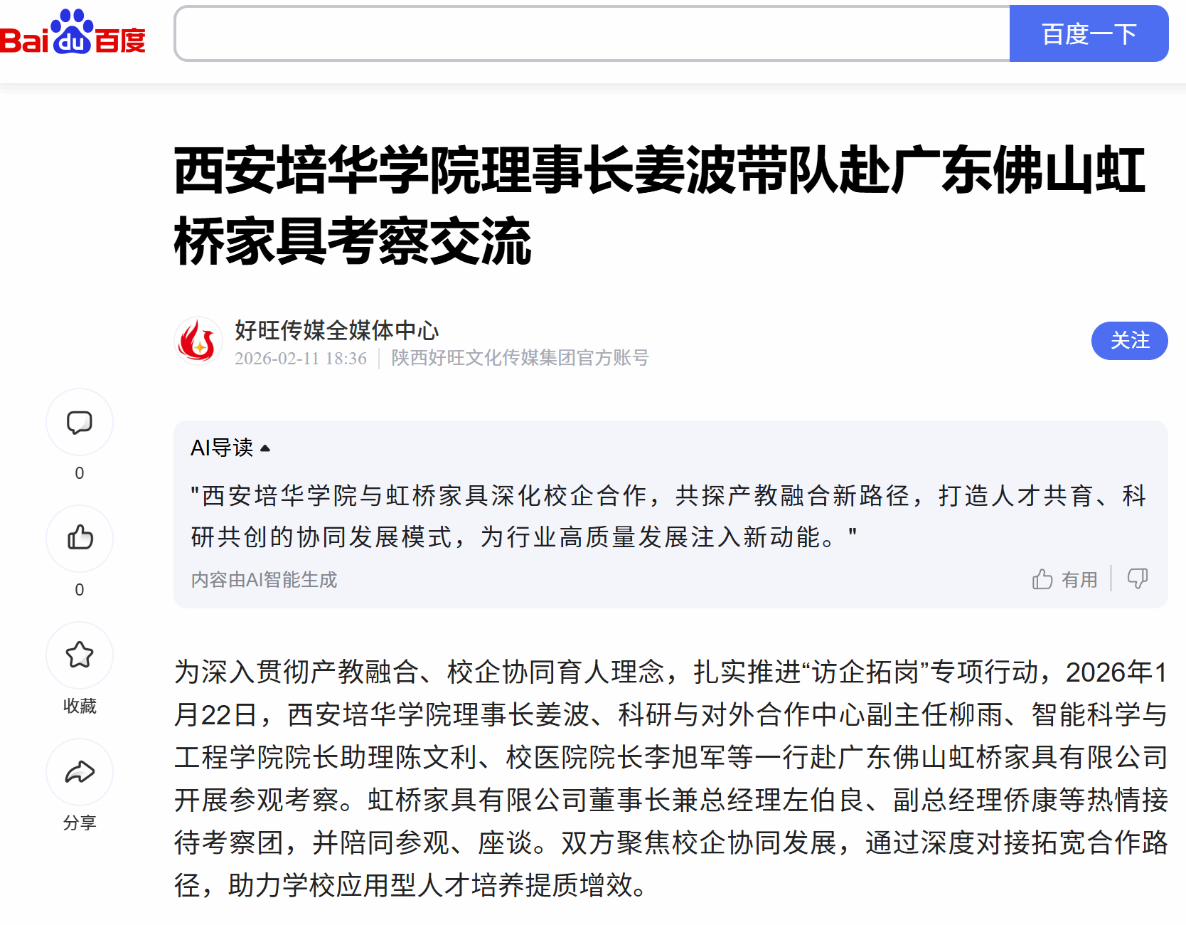 百度:西安培华学院理事长姜波带队赴广东佛山虹桥家具考察交流
