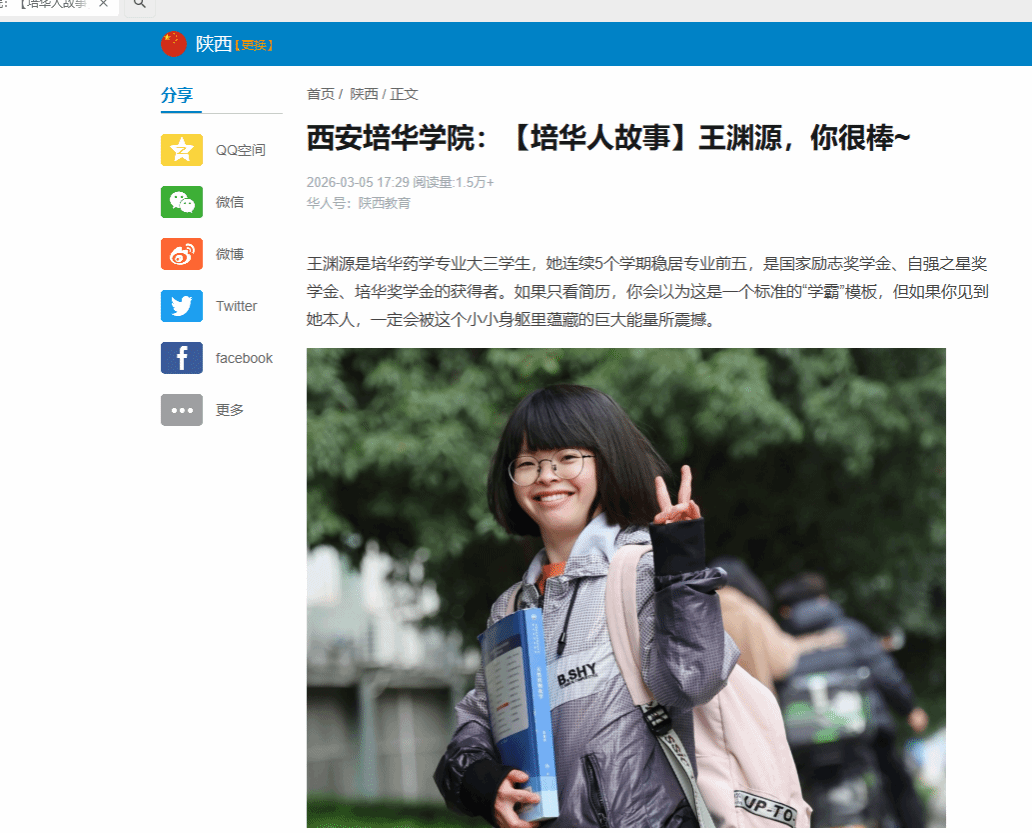 华人头条:西安培华学院:【培华人故事】王渊源,你很棒~