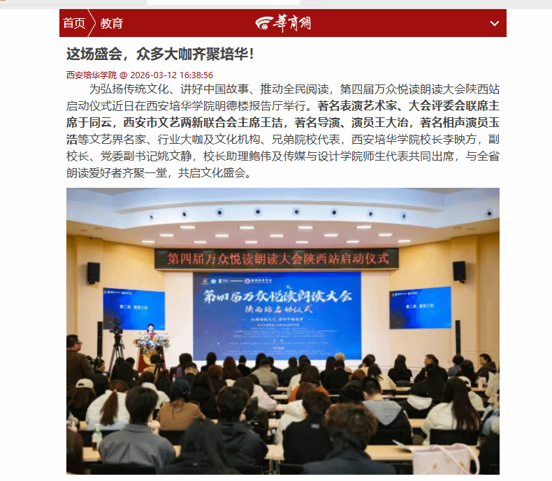 第四届万众悦读朗读大会陕西站启动仪式在西安培华学院举办