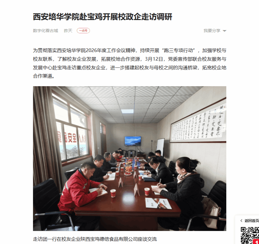 一点资讯:西安培华学院赴宝鸡开展校政企走访调研