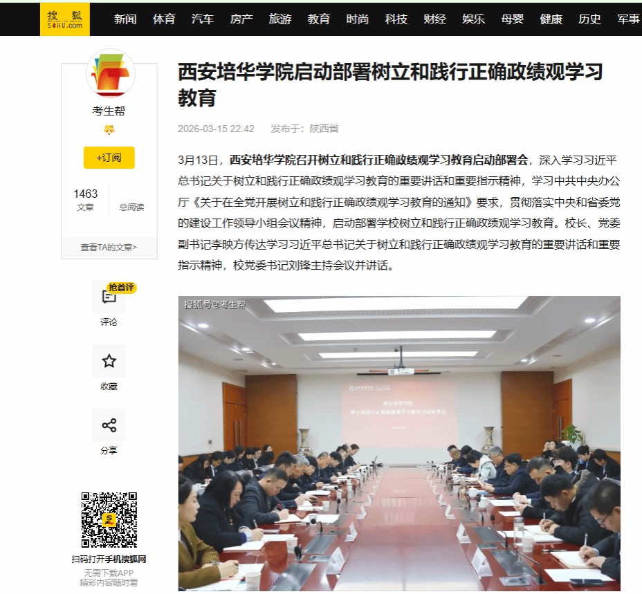 西安培华学院启动部署树立和践行正确政绩观学习教育会议指出,开展树立和践行正确政绩观学习教育,是贯彻落实党的二十届四中全会战略部署、践行党的根本宗旨、夯实党的执政根基的重要举措,是巩固拓展党内集中学习教育成果、持之以恒推进全面从严治党的有效途径。全校上下要提高政治站位,切实把思想和行动统一到党中央决策部署上来,坚定拥护“两个确立”、坚决做到“两个维护”,坚守为党育人、为国育才初心使命,把对党的忠诚体现到办学治校全过程。会议强调,要深刻理解、准确把握、全面落实“立党为公、为民造福、科学决策、真抓实干”的总要求,坚持聚焦主题、简约务实,不分批次、不划阶段,一体推进学查改。要紧扣主题主线,深化学习研讨。把学习习近平总书记关于树立和践行正确政绩观的重要论述作为首要任务,引导广大党员干部认真思考“政绩为谁而树、树什么样的政绩、靠什么树政绩”这个根本问题,筑牢干事创业思想根基。要深入开展问题查摆,严格对标对表。落实领导班子成员深入基层调查研究,深入查找政绩观方面存在的问题,从党性上找差距、查根源、强修养。要坚持动真碰硬,推进整改整治。对查摆问题要列出清单,坚持系统观念,边查边改、立行立改、真改实改。要着眼常态长效,抓好建章立制。做好制度规章的废改立释工作,抓好制度执行跟踪问效。要围绕师生满意,做好开门教育。广泛听取师生意见建议,聚焦师生急难愁盼问题,集中力量办成一批师生可感可及的实事好事,不断增强师生归属感、获得感和幸福感。会议要求,全校各级党组织要强化责任担当,周密安排部署,确保学习教育高起点开局、高标准推进、高质量见效。要加强组织领导,压实主体责任,党委(党总支)主要负责同志要担负起“第一责任人”职责,其他党政班子成员要认真履行“一岗双责”;要强化督促指导,从严推进落实,确保学习教育扎实推进、取得实效;要坚持“两手抓”,深化学用结合,把开展学习教育与全面从严治党、强本申硕攻坚、改革发展稳定等年度重点工作相结合,与整治形式主义为基层减负相结合;要注重宣传引导,营造浓厚氛围,切实把学习教育成果转化为推动学校高质量发展的强大动力,为把我校建成特色鲜明的高水平应用型大学提供坚强保证。参会本次会议有校领导、校党委委员、纪委委员,各基层党委(总支、直属党支部)书记,各院(部)、中心中层领导干部等。