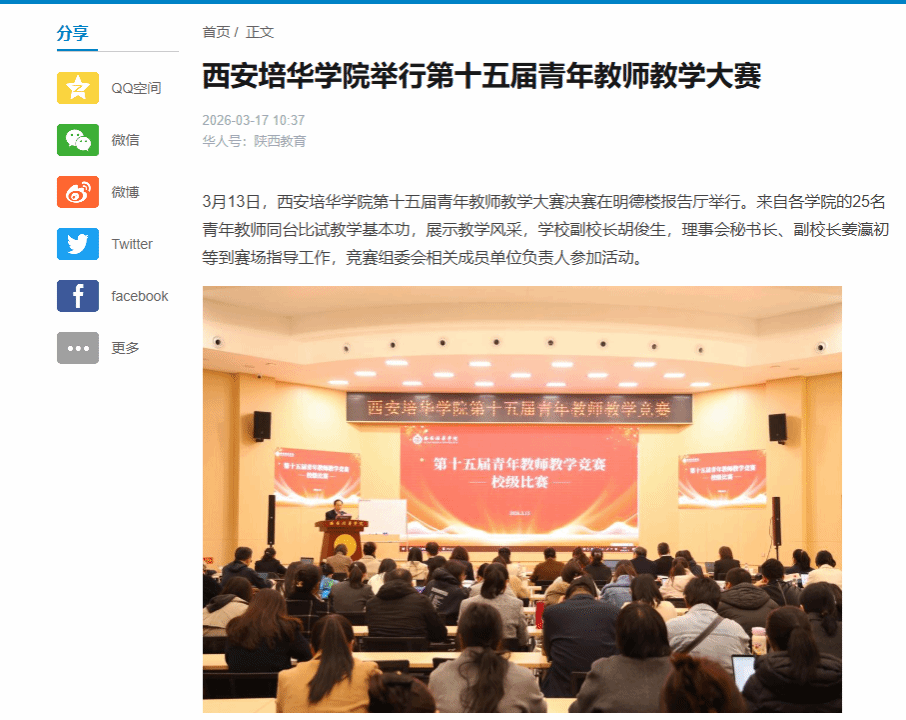 华人头条:西安培华学院举行第十五届青年教师教学大赛