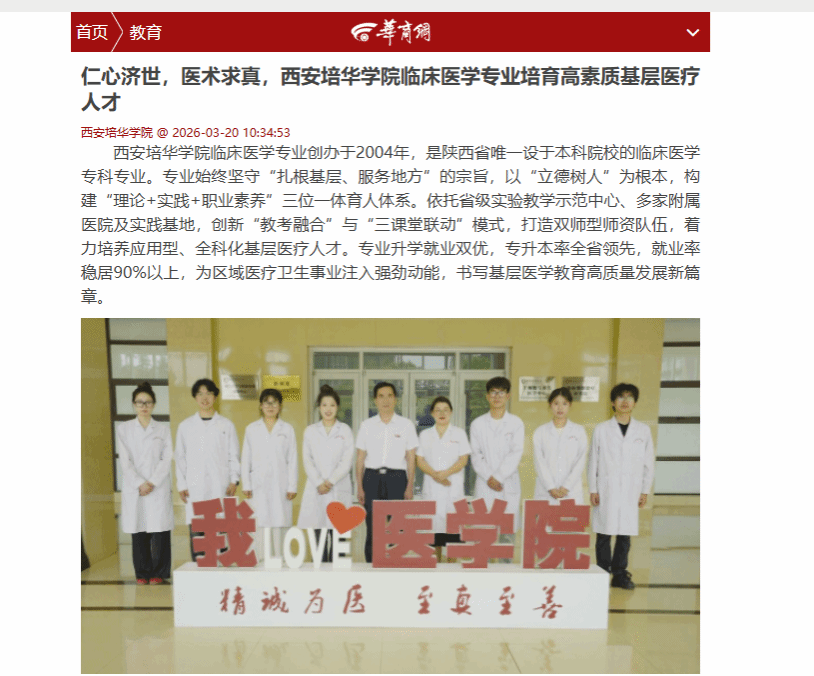 以仁心济世之心,走医术求真之路。西安培华学院临床医学专业,愿做基层健康的守护者,为健康中国建设贡献培华力量。