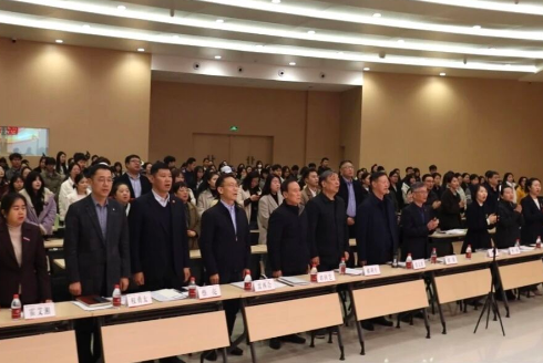 熟悉的旋律响起,全场齐声高唱,“没有共产党就没有新中国……”嘹亮的歌声在报告厅内久久回荡,唱出了对党的无限热爱,也唱响了团结奋斗、再建新功的坚定信念。