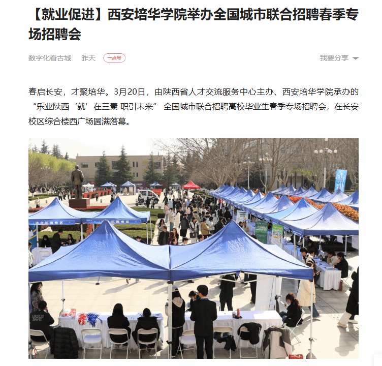 春启长安,才聚培华。3月20日,由陕西省人才交流服务中心主办、西安培华学院承办的“乐业陕西‘就’在三秦 职引未来” 全国城市联合招聘高校毕业生春季专场招聘会,在长安校区综合楼西广场圆满落幕。