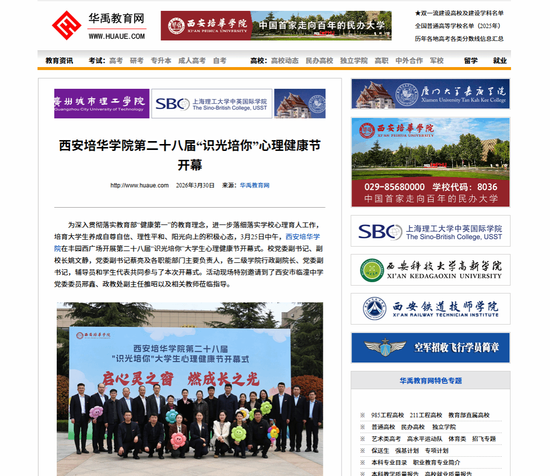 华禹教育网:西安培华学院第二十八届“识光培你”心理健康节开幕