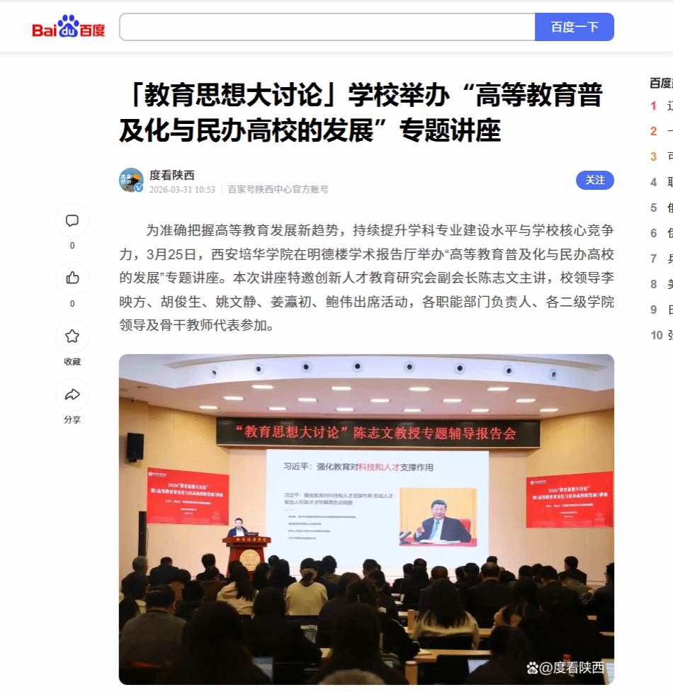 百度:「教育思想大讨论」学校举办“高等教育普及化与民办高校的发展”专题讲座