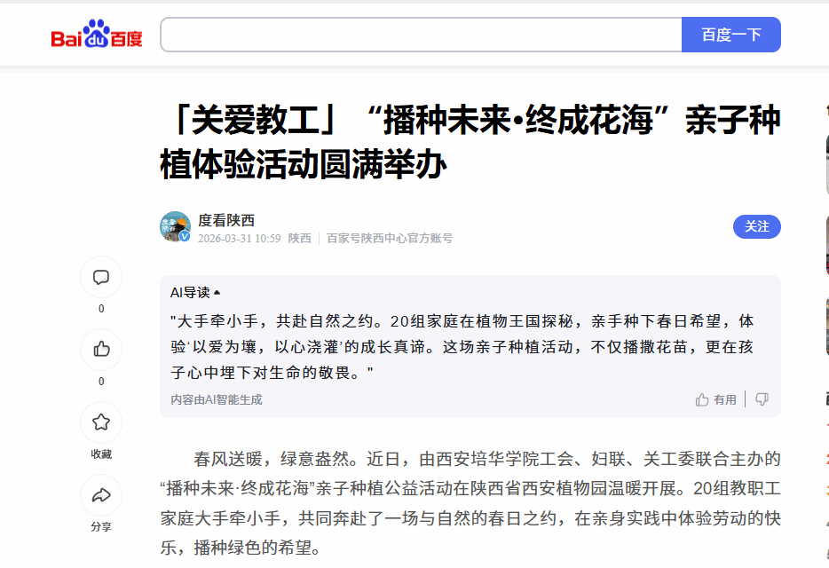 百度:「关爱教工」“播种未来·终成花海”亲子种植体验活动圆满举办