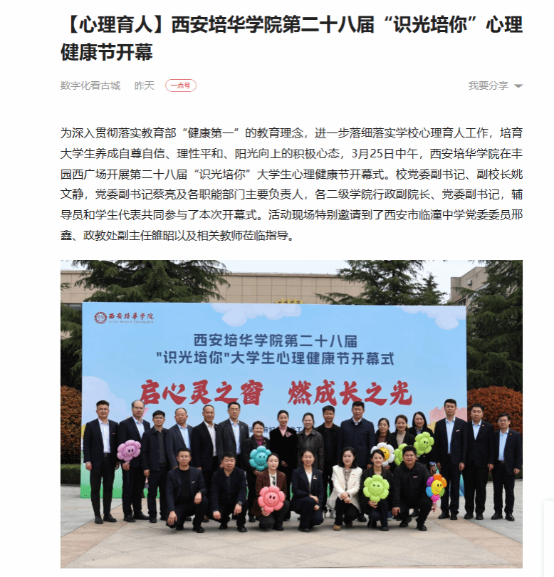 一点资讯:【心理育人】西安培华学院第二十八届“识光培你”心理健康节开幕