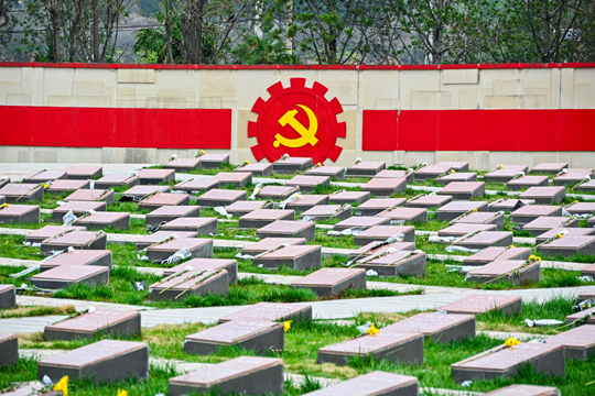 在肃穆的扶眉战役烈士陵园,2160座烈士墓碑静静伫立,诉说着1949年7月那场浴血奋战的峥嵘岁月。志愿者们手持白色油漆笔,先轻柔拂去墓碑表面的尘灰,让斑驳的碑文渐渐清晰;随后凝神屏息,一笔一划、一丝不苟地为烈士的姓名与事迹重新描白。从籍贯、所属部队,到职务、牺牲时间与年龄,每一个字都认真描摹,每一笔都饱含敬意。志愿者们保持同一姿势重复着单调却庄重的动作,他们专注认真,只为让每一位烈士的姓名与事迹更加清晰,让英雄的荣光永不褪色。