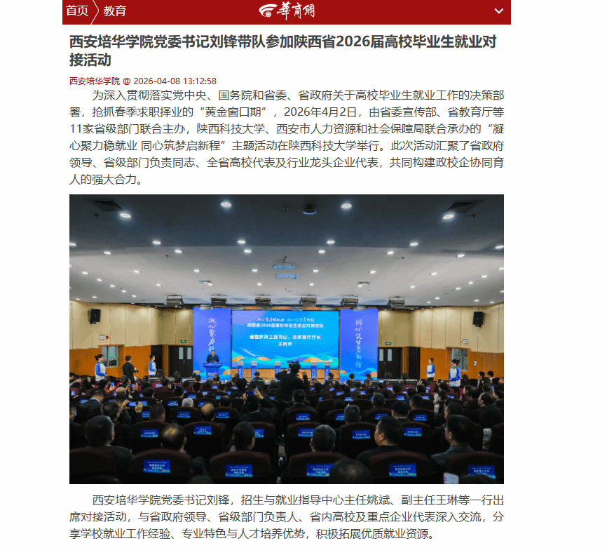 华商网:西安培华学院党委书记刘锋带队参加陕西省2026届高校毕业生就业对接活动