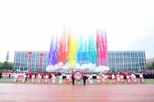 入场式视觉盛宴后,方阵表演将气氛推向顶点——老师们以《让我们一起出发》团队协作默契满分,欢笑汗水交织拉开最燃序幕;医学院《医韵青春,律动健康》动作如手术刀精准,医者仁心与青春活力完美交融;法学院《光亮》扇子开合似法典翻卷,舞步起落如正义天平,法治信仰随扇舞流淌;智工院队形变换如精密算法,智慧与汗水共振;国际教育学院《赤子风华,奔向寰宇》多元文化交融,世界眼光绽放;传媒与设计学院《横山腰鼓》以鼓为媒、以舞为翼,黄土地热情燃爆全场;文学院《礼乐华章》折扇开合如史册翻卷,舞步起落似山河泼墨,书写最美青春华章;会计与金融学院《盛世欢歌》以欢歌笑语献上盛世盛宴;体育学院《龙狮舞动,同心筑梦》舞龙舞狮踏浪掀高潮,动感节拍点燃全场,将开幕式推向最高潮。