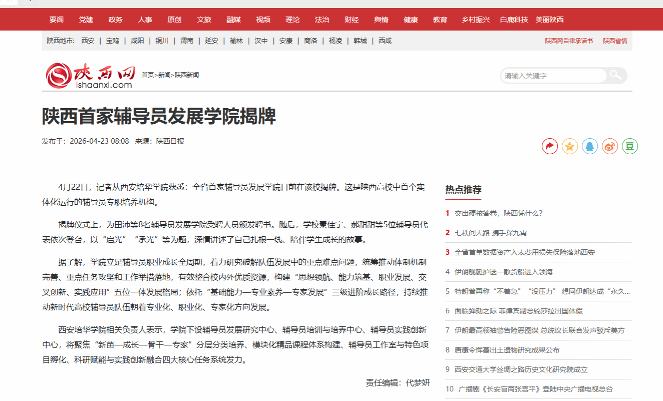 陕西网:陕西首家辅导员发展学院揭牌