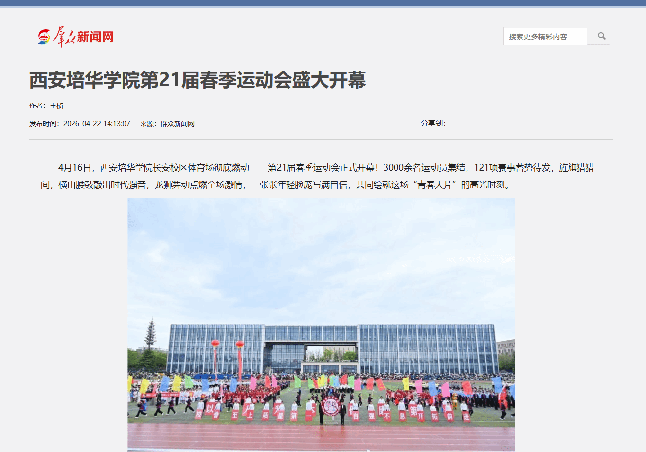 群众新闻网:西安培华学院第21届春季运动会盛大开幕