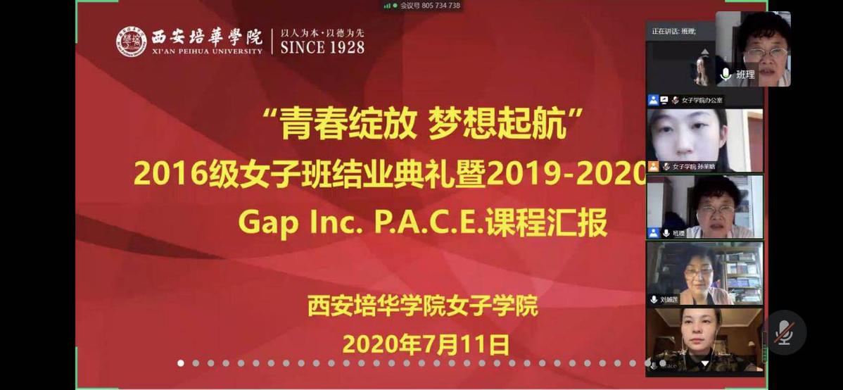 7月11日,西安培华学院女子学院2016级女子班结业典礼暨Gap Inc.P.A.C.E.课程汇报在云端如期而至。