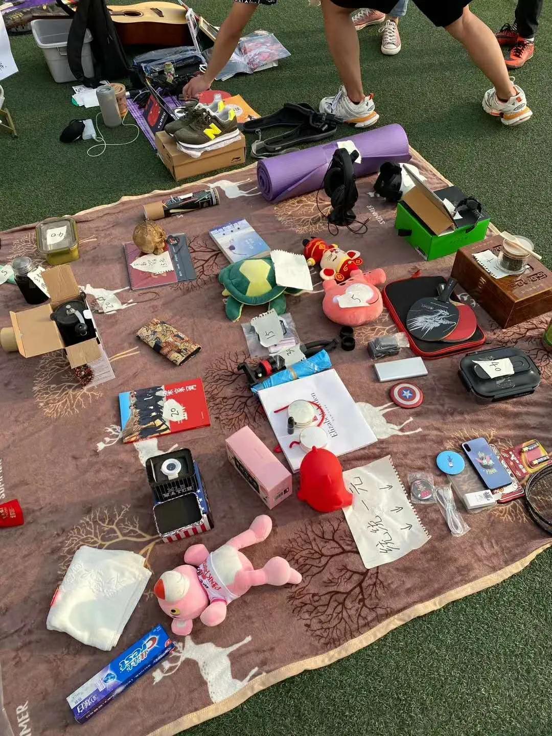将自己的闲置物品放置在桌布上