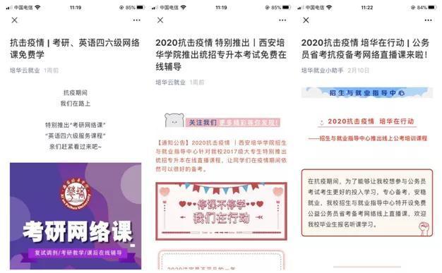 为学生定制开设“抗疫公考”、“考研、四六级”、“专升本”等线上公益培训班