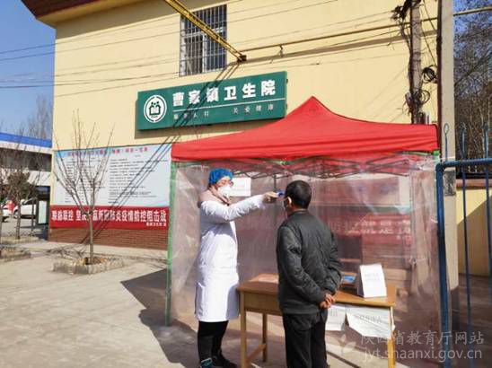 西安培华学院2015级临床医学专业学生王进为群众进行体温检测