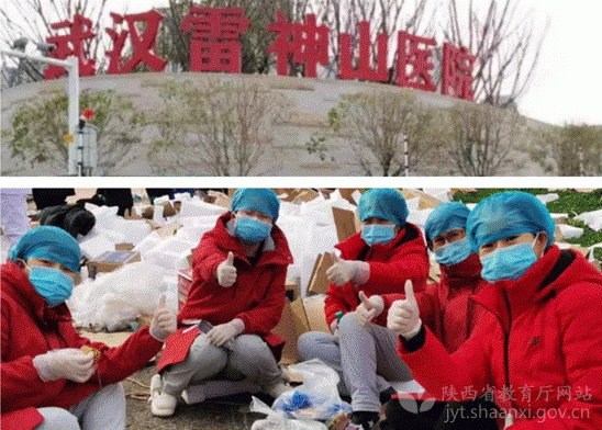 西安培华学院2006级护理专业学生李帅在雷神山医院与同事在一起